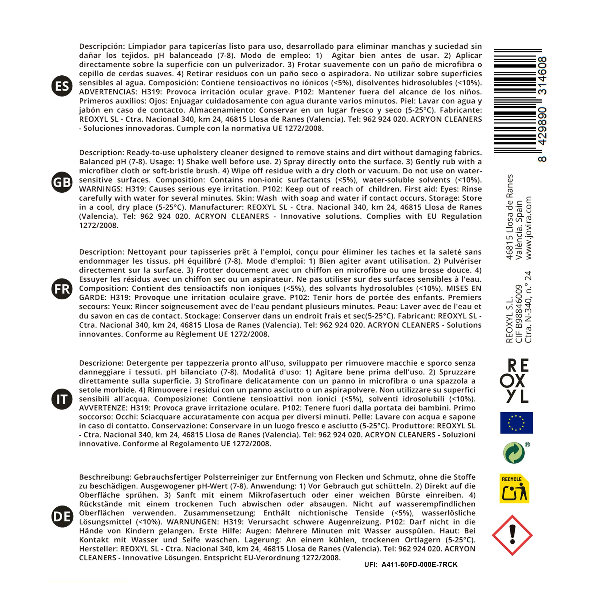 limpiador de tapicerias para tela o cuero sin componentes dañinos