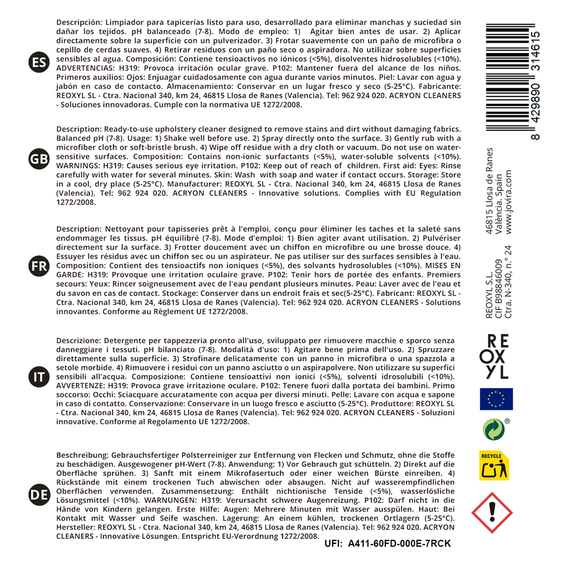 limpiador de tapicerias para tela o cuero sin componentes dañinos